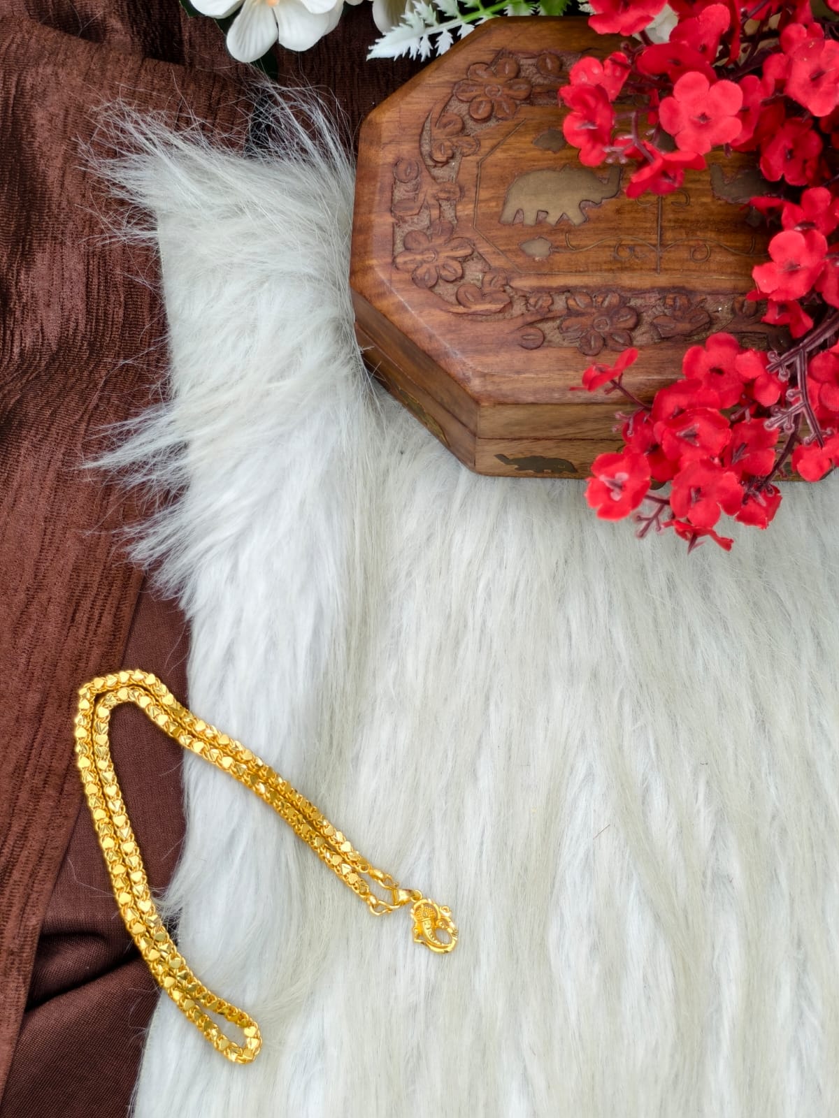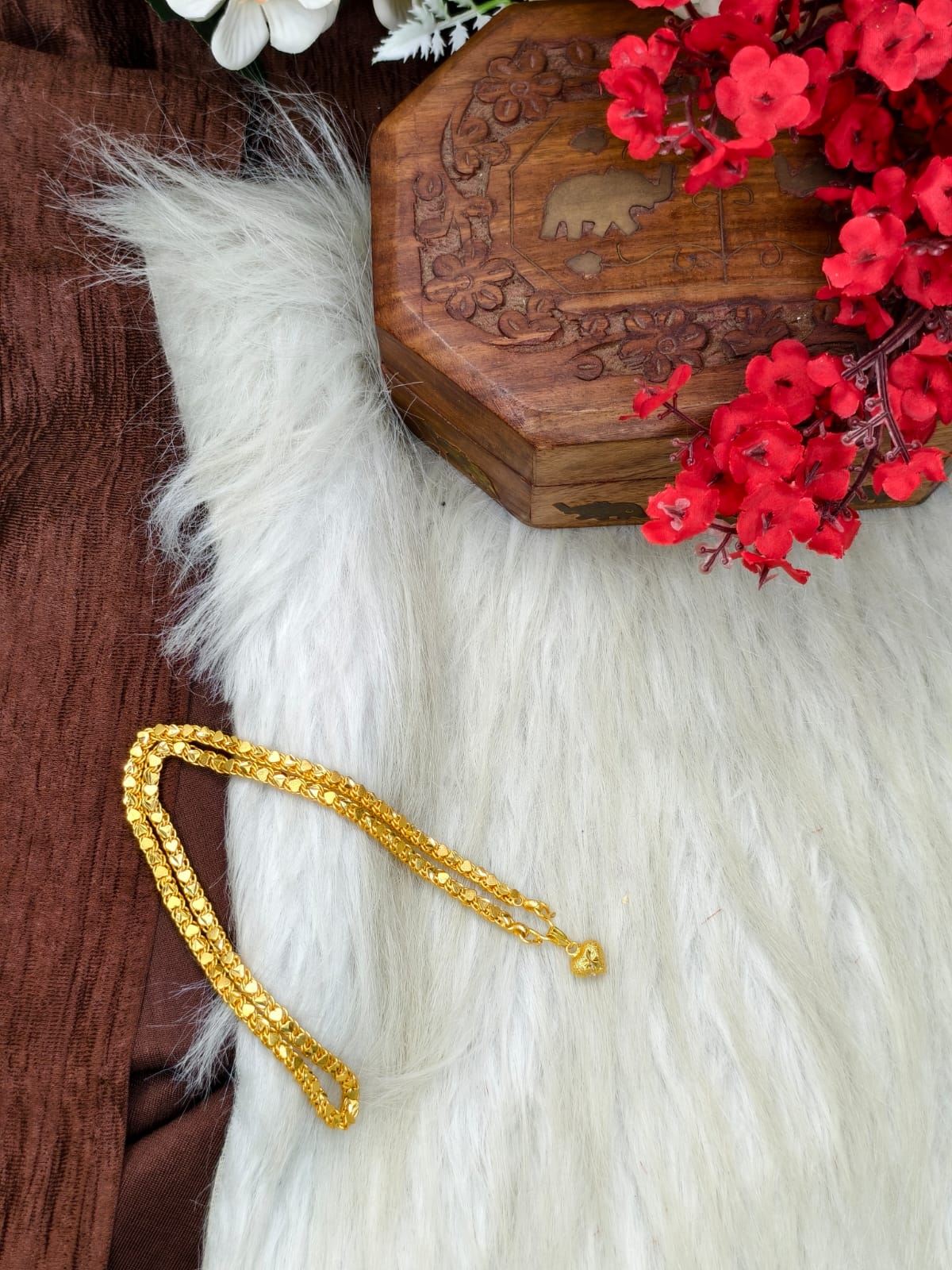 Crafted with a premium base metal and finished with a rich gold plating, this 18-inch lightweight chain rests beautifully on the neckline ✨ Perfect for daily wear, office looks, casual outings, and festive occasions 🌸