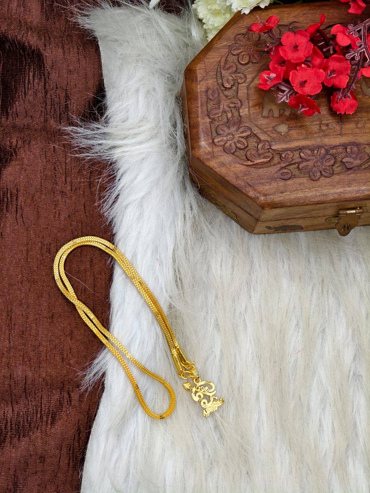 Add a touch of tradition and divinity to your look with this stunning Muguran (Murugan) Dollar Chain. The chain features a beautifully designed Murugan pendant (dollar), symbolizing courage, victory, and positive energy. Made with high-quality micro gold plating, it gives a rich, real-gold appearance without losing comfort.