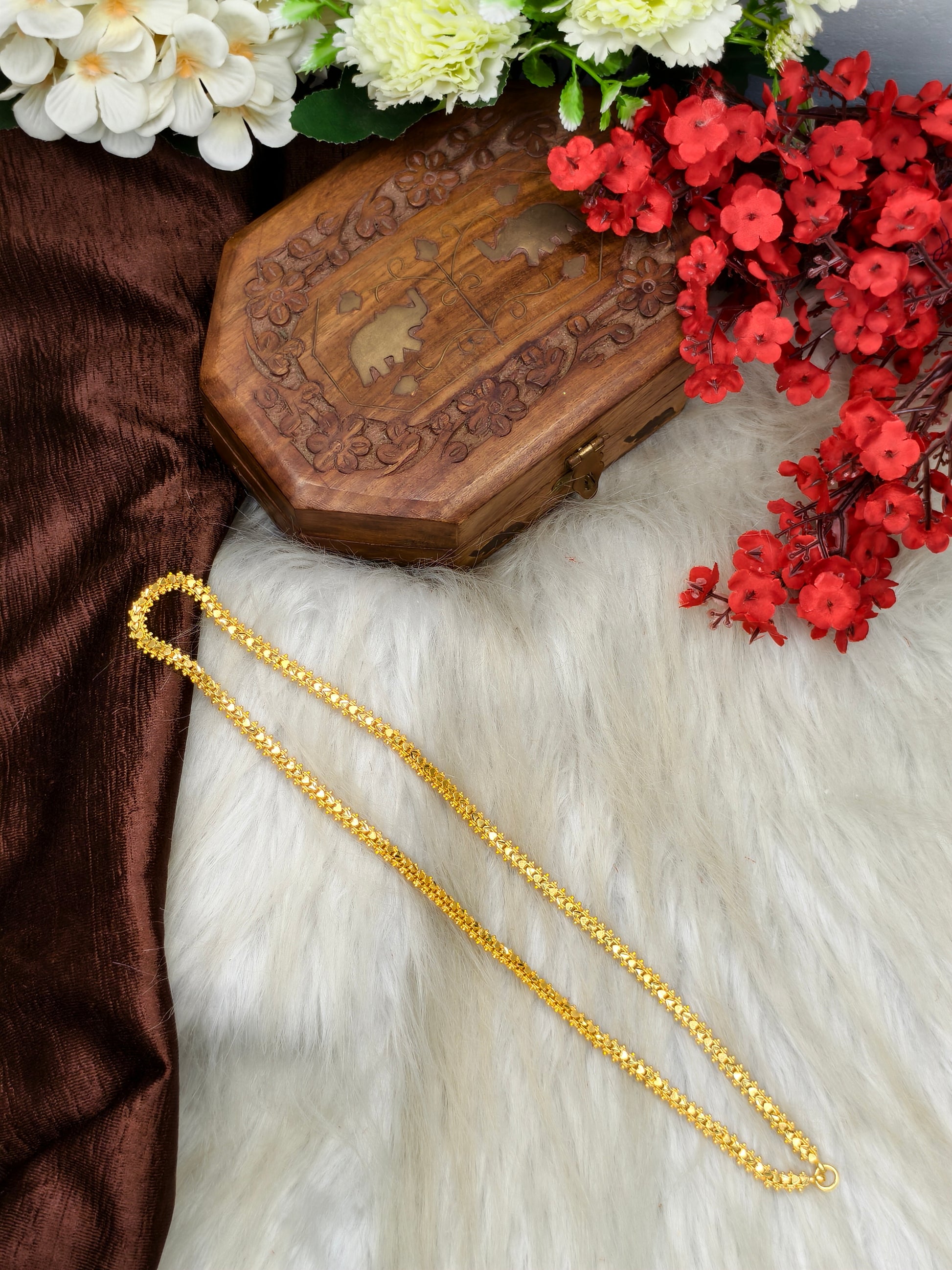 Upgrade your look with this stylish Gold Plated Matte Finished Chain, crafted to give a rich and elegant real-gold appearance. The matte texture adds a premium touch, making it perfect for everyday use or special occasions.