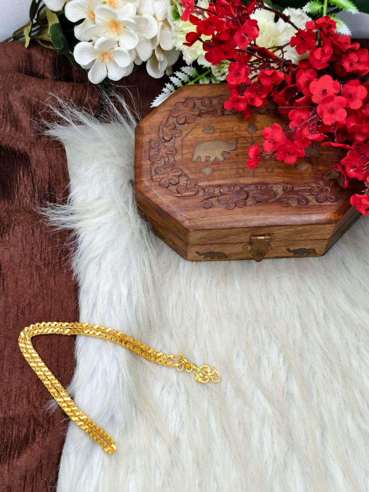 This Muguran dollar chain is crafted with a skin-safe, anti-tarnish coating, making it ideal for everyday wear, temple visits, festive occasions, or gifting to loved ones. The lightweight design ensures all-day comfort while the premium finish keeps it shining like new.