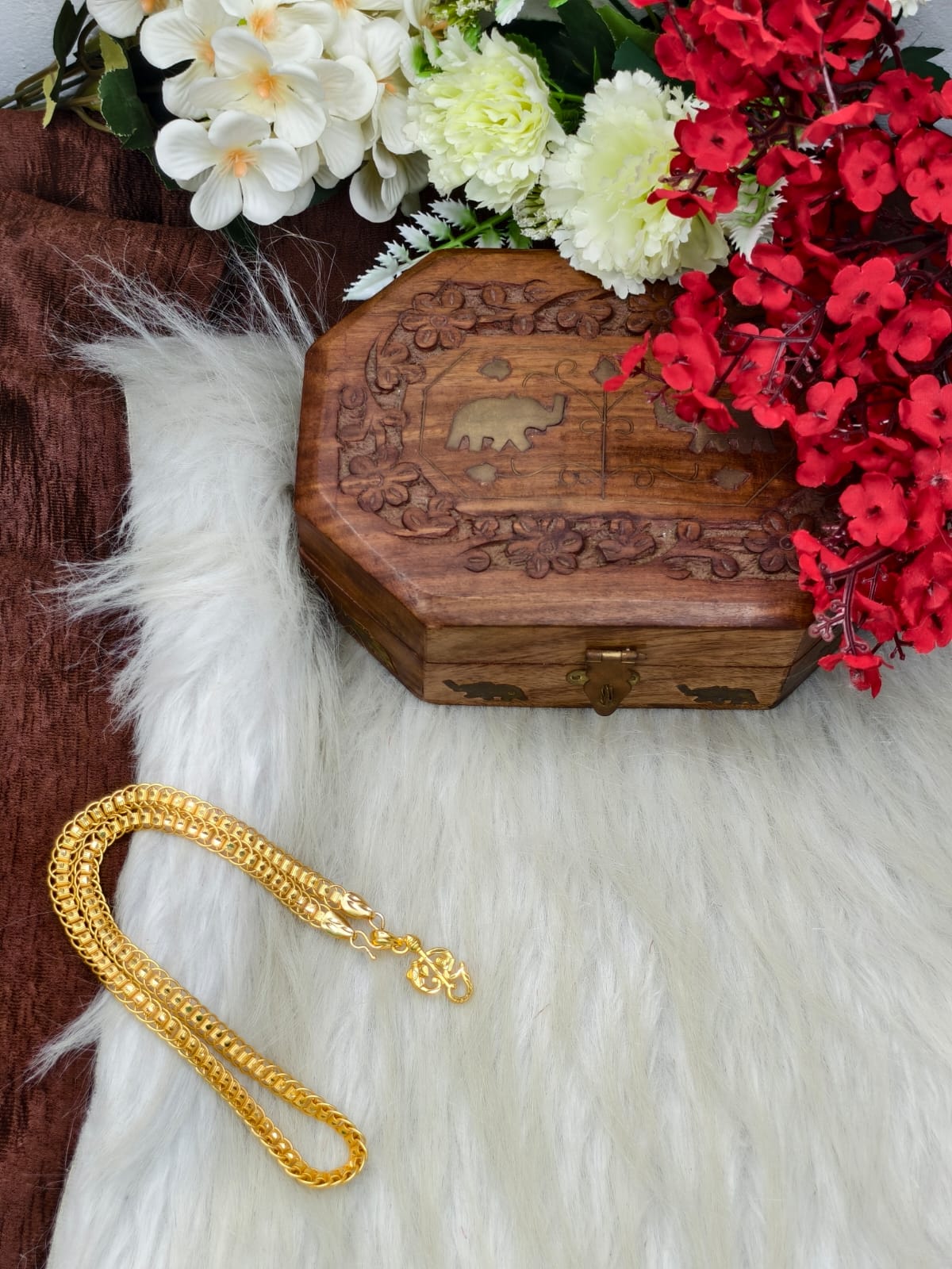 This Muguran dollar chain is crafted with a skin-safe, anti-tarnish coating, making it ideal for everyday wear, temple visits, festive occasions, or gifting to loved ones. The lightweight design ensures all-day comfort while the premium finish keeps it shining like new.