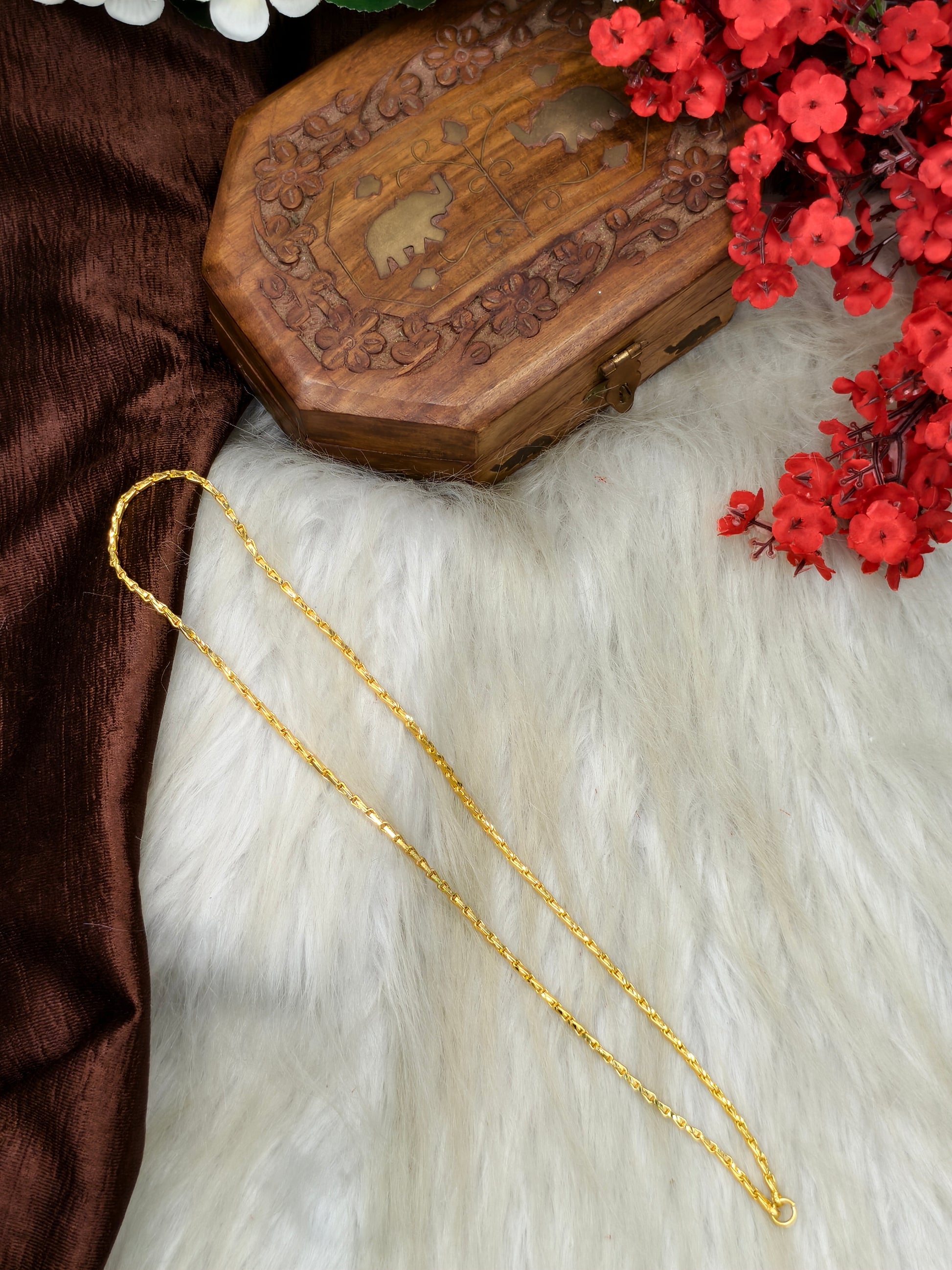 Upgrade your look with this stylish Gold Plated Matte Finished Chain, crafted to give a rich and elegant real-gold appearance. The matte texture adds a premium touch, making it perfect for everyday use or special occasions.